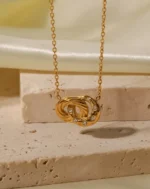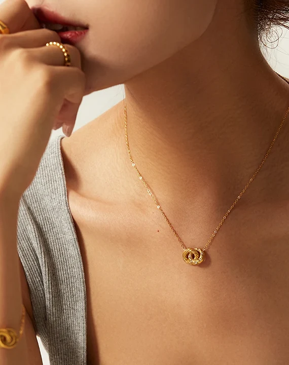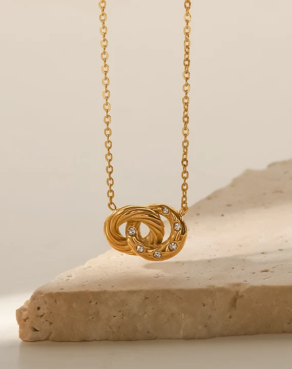Hollow Circle Necklace Zircon Stainless Steel Round Circle Pendant Necklace